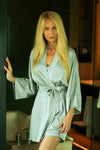 Made of flowing satin, with a comfortable cut, the underskirt is a must-have in an elegant woman's closet and will work well in any situation. The kimono sleeves, which give you the opportunity to wear it in two ways: rolled up cuffs or straight. It all depends on what mood you are in. This short kimono cut satin gown has a belt that sexily accentuates the waist. The simple short satin robe impresses with its elegance and almost versatile use. The inflatable housecoat is packaged in an elegant, large package, so if you're looking for something to give as a gift, this is the perfect solution.