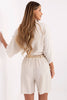 Light and airy boho style shorts, perfect for warm days and everyday outings. Made of a natural blend of viscose and linen, they guarantee comfort and a feeling of freshness even in the hottest weather. The high-waisted model with wide, loose legs provides freedom of movement and emphasizes the silhouette. The shorts do not have a classic fastening, they are slip-on, which increases wearing comfort. There is a fastened belt at the waist, allowing you to adjust the fit and add a stylish accent. An additional advantage are the side slip pockets, which emphasize the everyday, practical character of the model. The smooth fabric in a natural shade makes the shorts look great with tops, blouses, and lightweight shirts. An ideal choice for summer walks, trips, or relaxation in the city, comfortably and with a touch of boho style.