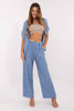 Light and stylish women's boho style trousers, created with everyday comfort and casual elegance in mind. Made of a breathable blend of viscose and linen, they are perfect for warmer days, offering breathability and comfort. The model has a high waist and wide legs, which beautifully flow with movement and slim the silhouette. The lack of a classic fastening ensures easy putting on, as the trousers are slip-on, and the fastened belt allows you to adjust the waist and emphasize the figure. Side slip pockets add functionality and a casual character. The smooth fabric and simple cut make it easy to pair the trousers with a top, shirt or light blouse, creating a loose, everyday outfit with a touch of natural ease.