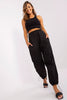 Pants with looser legs of parachute type. At the waist and at the bottom drawstrings. On the sides slip pockets. Cotton 50...