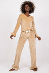 Velour pajamas consisting of a blouse and pants. Blouse with long sleeves trimmed with frills and a sweetheart neckline. Long pants with...