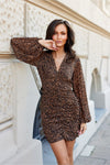 The top of the dress is an overlapping V neckline, which also gently accentuates the back. The long, buffeted sleeves, which give...