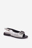 Women's sandals by the Jezzi brand. Made of high-quality eco leather. This model is distinguished by a decoration placed at the front, which adds a unique charm to them. Set on a flat heel. The soft insole will provide comfort with every step. Fastened with an adjustable buckle strap. Perfect for various occasions and evening outings, these sandals go well with both dresses and pants, emphasizing feminine style and elegance.