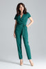 Short-sleeved jumpsuit with a loose drape at the waist. The model with long trousers, an additional tie at the waist, with a covered zipper at the back. Model ideal for the city to stilettos, for women who like market novelties.