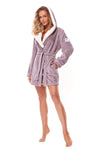 Short light pink women's bathrobe made of cuddly to the touch soft material, cozy like fleece. Warm women's bathrobe with a practical...