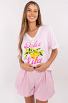 Comfortable and stylish blouse with a casual character, perfect for everyday wear and work. Made of breathable cotton blend with elastane, it guarantees wearing comfort and delicate silhouette fitting. Standard length and short sleeves make it a perfect choice for warmer days, and the V-neck subtly accentuates the neck and adds a feminine charm. The striped pattern with print gives a trendy accent, perfect for women who like to combine comfort with a bold style. It goes well with both jeans and a skirt, indispensable in everyday wardrobe!