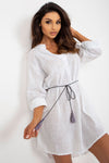 Cotton dress with long sleeves with the possibility of fastening, neckline. At the waist a drawstring for tying.