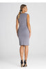 Elegant dress made of foam, sleeveless and semicircular neckline. Model with a classic cut, finished with decorative stitching.
