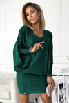 Bat dress with neckline. Made of elastic material with glitter. Dress in the color of bottle green. Brand numoco. Polish production. Spandex...