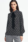 This unique shirt is a must-have for any woman who appreciates originality. Made of viscose, which is pleasant to the touch, it ensures comfortable wearing all day long. An interesting pattern adds to its character and makes it stand out from the crowd. The classic collar with a black sash for tying allows you to create many styles. The long sleeve finished with a cuff gives the shirt an elegant look. The front button closure makes it easy to put on and take off. This shirt is an investment in your closet. Its original design and pleasant material will make you feel special and stylish in any situation. This is an item that should be in the closet of every woman who values individuality.