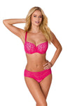 Elegant padded bra in fuchsia color. Beige cups are covered with sensual lace, lace midriff. A decorative bow between the cups, adjustable,...