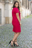 Elegant pencil dress Marisa with short sleeves and V-neck is a true quintessence of minimalism. Its simple cut, smooth, uniform material and lack of any accessories make it an excellent base for many different styling options. What's more, Marisa is thus also extremely versatile. Ladies of all ages and body types will feel perfectly in it, and it can be matched with both elegant and sporty accessories. Some models of dresses never go out of fashion and therefore should be a must-have in a woman's closet. The Marisa dress is a perfect example of such a creation and that is why it is incredibly popular regardless of the season. Our proposal is a great choice both for work and for less obliging and quite private occasions, fastened with a covered zipper. Marisa looks best when paired with heeled shoes, a large handbag and a matching jacket. However, it will also create a successful styling with ramones and boots, as well as a light cardigan and sandals.