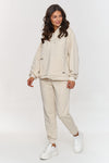 Do you like minimalism with a touch of elegance? Choose a set consisting of pants and a hoodie with embroidered hood. It's a perfect combination of comfort and subtle details that give the styling a unique character. Ideal for both everyday wear and more casual outings. Loose sweatpants provide comfort and freedom of movement, while the hoodie, adorned with elegant embroidery, gives it a unique look, highlighting attention to detail. Pockets in the hoodie and pants are a functional element that adds practicality to the whole. Thanks to them, you can easily store small items, making this set even more comfortable. White laces on the hood and at the pockets introduce a subtle contrast that adds freshness and emphasizes the modern look. These details give the set a unique character and attract attention. The natural material provides softness, breathability, and a pleasant fit to the body. This set will work well in sporty stylings as well as in everyday urban outfits. You can wear it together or mix and match individual pieces with other clothes, creating different fashionable combinations.
