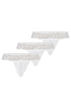 A multi-pack of white thongs, made of stretch lace with a rose motif combined with a delicate mesh triangle-shaped front. The lace wraps around the hips, emphasizing them, with a thinner strap hiding between the buttocks at the back. The thong in the set is very sexy tempts the male eye, and is the perfect gift for her and him, as it works on the male senses. A tri-pack of women's thongs is a must have for any modern woman.