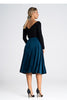 Elegant midi skirt that emphasizes the waistline. The waist is elastic, and the length of the skirt reaches the calves and is subtly flared.