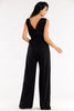 Jumpsuit with wide pants and an envelope top, creased with a wide elastic waistband. The suit is sewn on an elastic lining. The suit is made in Poland.
