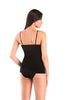 Women's cotton top in black. Made of stretchy cotton with the addition of Lycra fiber, so it is stretchy and compact. When worn, it wraps the silhouette very well, shaping it nicely. After wearing and washing, the fabric returns to its original appearance due to its elasticity. The top is on thin shoulder straps, which are adjustable, so you can adjust the length to suit your needs. An additional advantage is the second layer of cotton sewn inside, imitating a short top, which holds the bust in place. Thus, it can be used for various sports. Combined with pants, the cotton T-shirt can create an elegant styling, ideal for everyday wear.