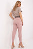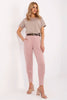 Elegant women's sweatpants combining casual style with a touch of elegance. Made of high-quality blend of polyester, viscose, and elastane, they provide comfort and perfect fit. High waist with elastic at the back ensures comfort, while a buttoned belt emphasizes the waist and adds chic. The smooth material makes the pants perfect for everyday wear, work, and more formal occasions. The model features side slip pockets and the cuffs are finished with ribbing, giving them a modern character. Ideal for women who appreciate style and comfort.