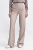 Women's pants with a fit cut, fitted to the silhouette, made of material with subtle, contrasting tennis-style stripes. They have a high waist that emphasizes the waist and ensures an elegant look. The bootcut legs widen slightly from the knees down, creating a harmonious line. The pants are fastened at the front with a zipper and a covered button placket, giving them a neat and modern look. Classic front pockets and faux back pockets add practicality and style. Belt loops allow for additional adjustment, completing the whole with a functional accent.