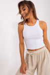 Short T-shirt with thicker straps and a round neckline. The shirt is made of ribbed material. Spandex 5 % Polyester 95 %...