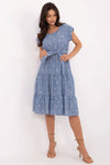 Airy and feminine summer dress with a flared cut, perfect for everyday occasions. Made of a light, pleasant to the touch blend of viscose and polyester, it ensures comfort and subtly emphasizes the silhouette. The midi-length model with short sleeves and a classic, round neckline looks light and stylish. The dress is put on over the head, which increases comfort of use. A delicate embroidery is the dominant accent, adding a romantic character to the whole. An additional advantage is a belt for tying at the waist, which allows for individual adjustment of the cut, and a decorative frill at the bottom, giving the dress a summer, girlish charm.