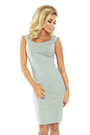 Fitted dress with a neckline, made of warm fabric in grey herringbone. Very elegant. Spandex 5 % Viscose 95 % Size Hips...