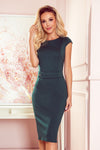 Elegant midi dress with a belt and short sleeves in the color of bottle green. Made of thicker, pleasant to the touch, slightly stretchy unlined fabric. Fastened at the back with a covered zipper. Numoco brand. Polish product.
