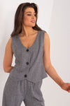 The fabric vest is a unique piece of women's closet, combining elegance and subtlety. Ideal for work or business meetings, this vest brings a touch of sophisticated chic to styling. Made mainly of cotton, the vest provides comfortable wear and a pleasant feeling on the skin. Its versatility makes it perfect for the fall, winter and spring seasons, creating stylish combinations all year round. The length of the vest is standard, making it a perfect addition to a variety of outfits. The button closure adds elegance, while allowing the vest to be easily put on and taken off. Its subtle design means that it can be worn with both pants and a skirt, always creating a stylish and polished ensemble. This fabric vest is an option for women who want to display their elegance in a subtle and extremely charming way, making any styling unique and classy.