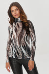 A printed blouse is a bold and fashionable proposition, perfect for women who like original patterns and daring stylizations. The model has a fitted cut that emphasizes the silhouette, but thanks to the elastic material, it is also comfortable to wear. Made of thin, transparent material that adds lightness and subtle elegance to it. Thanks to the semi-transparency, the blouse gains a modern, sensual character. Its characteristic element is a high, gathered turtleneck that adds elegance and lightness to it. The entire model is covered with a dynamic pattern that combines originality with refinement, creating an intriguing, modern effect. Combining the blouse with black leather pants creates a bold, rock look, giving the whole a distinctive character. The blouse is perfect for evening outings or more casual but stylish occasions. The pattern and material make it definitely stand out and emphasize a unique style. The model is available in several color variants from animal to abstract and floral patterns.
