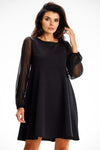 This dress is a combination of classic and modern, the top of the dress emphasizes the silhouette, while the bottom remains light and airy. The see-through mesh sleeve adds elegance and delicacy.
