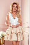 Two-tone dress with lace neckline and foam material on the skirt. The bottom of the dress is beige. Made in Poland. The...
