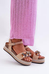 Women's sandals made of eco-suede. Set on a decorated platform and a delicate anchor. Adjustable strap with a buckle ensures a perfect fit to the foot. In addition, the strap in front decorated with details adds to their unique charm and character. These sandals are an excellent choice for women who appreciate a fashionable look and comfort, ideal for both everyday walks and summer outings.