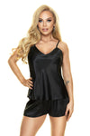 Sensational set made of currently fashionable satin, in black. The set consists of a smooth blouse with a slight cut in the waist and comfortable short shorts on elastic. It is very elegant, feminine and mega practical. Also great for a vacation. Soft satin, Italian-made, exclusive, you will immediately fall in love with it.... Straps of adjustable length. Ideal also for a great gift. Top quality.