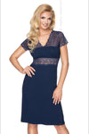 Navy blue nightie made from a combination of soft viscose and beautiful, stylish lace. A very feminine cut with a rich, lacy top and short, lace sleeves, it catches the eye. The cut is slightly fitted to the body, looser at the bottom. You will surely feel beautiful and very comfortable in it.