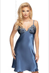 An elegant nightdress for the lovers of satin which is very fashionable nowadays. In azure colour. Incredibly sensual and very feminine. Cups emphasized with decorative floral embroidery. Very attractive cut, subtly flared at the bottom. Adjustable straps.