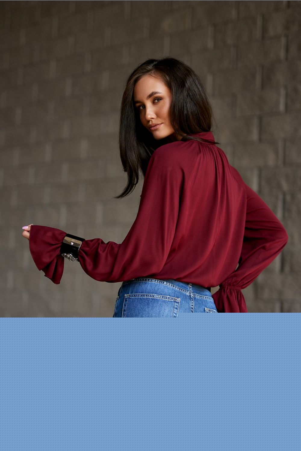 Model Isabel is a blouse made of viscose, distinguished by an elegant tie under the neck and decorative ruffled cuffs. The light, breathable fabric combined with a loose fit ensures comfort and subtly accentuates the silhouette. Carefully sewn in Poland, it combines classic elegance with a modern character. Isabel will work well in office stylings with elegant trousers, as well as in evening sets with a fitted skirt. Designed and made in Poland.