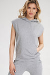 Cotton sleeveless hooded sweatshirt with a large pocket sewn on the front. Sweatshirt with a loose cut. Cotton 95 % Spandex 5...