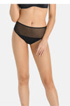 Women's high-waisted panties. They have a classic design without decorations, high quality material guarantees long use. Panties are made of high-quality materials, they are very comfortable and comfortable for everyday use. The elastic lycra fiber in the composition ensures a perfect fit and prevents deformation after washing and wearing. The back features a double mesh, so they are not see-through. The panties have a classic design and are aimed at women who love simplicity. They reach up to the belly button, therefore they cover the protruding belly and guarantee an impeccable look in clothing. On the inside, in the crotch area, the panties are finished with a pleasant and soft to the touch cotton that absorbs moisture and ensures freshness. A thin elastic band is sewn in the waist from the inside, which holds the panties at the right height. Due to the high quality and higher design, the panties are suitable for everyday wear and for clothing for special occasions.