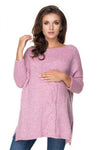 Loose-fitting sweater with long sleeves. The sweater has slits at the sides.