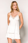 Verona is a delicate and feminine set. The set consists of a chemise with thin straps and short shorts. The cups are finished with lace, shorts with elastic band and pockets.