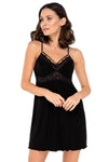 A delicate, black nightdress made of soft viscose. With subtle shoulder straps, which additionally decorate the neckline and on the back they cross each other. Cups profiled, without underwiring, in beautiful lace setting. Bottom loose, airy, comfortable. The product packed in an elegant box manufacturer.