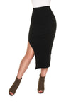 Fitted basic skirt. Skirt in pencil cut, with an opening at the side. The material adapts to the figure.