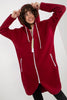 Women's sweatshirt with an extended cut, long sleeves and a hood. The sweatshirt is zippered, with slip pockets on the sides also zippered.