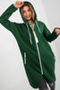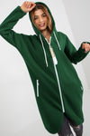 Women's sweatshirt with an extended cut, long sleeves and a hood. The sweatshirt is zippered, with slip pockets on the sides also...