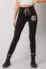 Women's black tracksuit bottoms with a print. Adjustable elastic waistband with a drawstring. Cotton 90 % Spandex 10 % Size Lenght Hips...