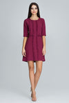 Elegant 3/4 sleeve dress with ruffles. The model gives exquisiteness and expressiveness. Simple, unusual form wraps around the silhouette and gives romance.