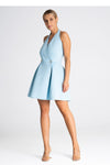 Elegant backless foam dress, fitted at the neck. It has an asymmetrical buttoned front and a counter-fold skirt. Polyester 100 % Size...
