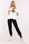 Stylish and comfortable sweatshirt set, consisting of a sweatshirt and pants, is an ideal choice for everyday styling. Made from a blend of cotton and elastane, it ensures comfortable wear and freedom of movement. The sweatshirt has a round neckline, 3/4 sleeves and a striking teddy bear print on the front, which adds to its charm. The pants, with long legs finished with ribbed cuffs and a high rise, are equipped with side slip pockets, making them a practical choice. As an added bonus, the ties at the waist allow for adjustment and emphasize the casual nature of the set. The set is a perfect combination of comfort and fashionable design, ideal for both relaxing at home and casual outings.