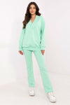 This women's set is the perfect choice for everyday wear, combining comfort with a minimalist style. It consists of a long-sleeved blouse with a wrap neckline, adding a feminine touch to the overall look. The subtle patch on the blouse is a fashionable detail that attracts attention. The pants have a simple cut, a high waist, and a wide elastic band at the waist, providing a perfect fit and comfort. The side slip pockets are not only practical but also emphasize the casual character of the set. Made of a soft blend of cotton, elastane, and polyester, guaranteeing comfort and durability. The set is perfect for walks, shopping, or relaxing at home, and its versatile design allows for easy adaptation to different occasions.