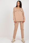 Modern and comfortable tracksuit set, which will work perfectly both for everyday wear and for work. Made of high-quality blend of cotton and elastane, it provides comfort, flexibility and perfect fit to the silhouette. The classic-cut sweatshirt has long sleeves and a practical snap fastening at the front, which adds a stylish, minimalist character to it. High-waisted pants with straight legs guarantee freedom of movement and comfort for all-day wear. Slip pockets on the sides increase the functionality of the set. The smooth pattern and universal design make the set fit perfectly into casual stylings, combining comfort with an elegant look. An ideal choice for women who value style and comfort in every situation!